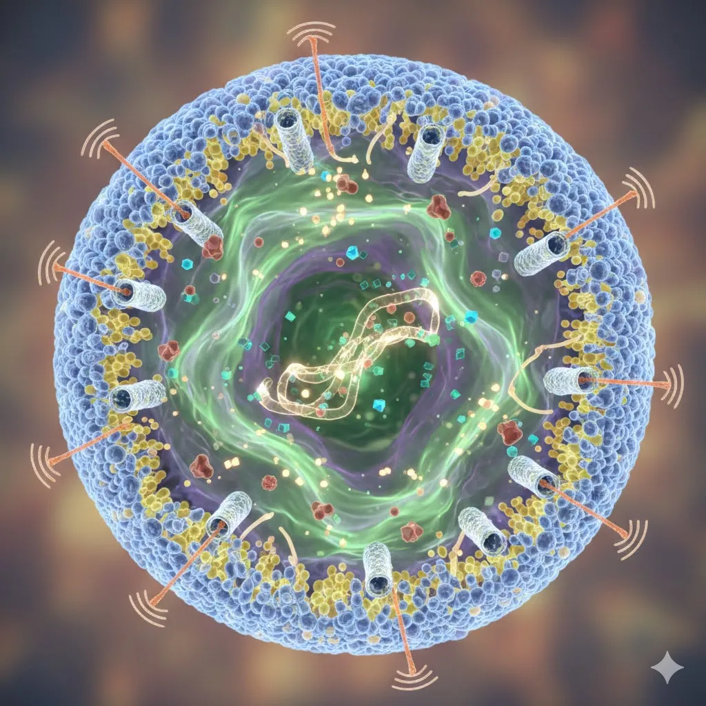 This separation, however, is not absolute; the membrane selectively allows the uptake of required molecules from the environment into the cell and the excretion of waste products. In addition, the membrane ‘senses’ the outside environment and relays important information into the cell.