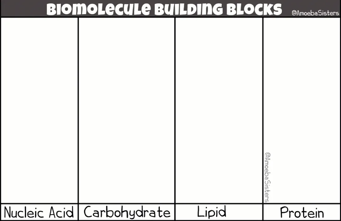 Hi ha tres tipus de macromol·lecules: proteines, àcids nucleics, i carbohidrats. Són responsables dels aspectes més bàsics dels processos vitals.