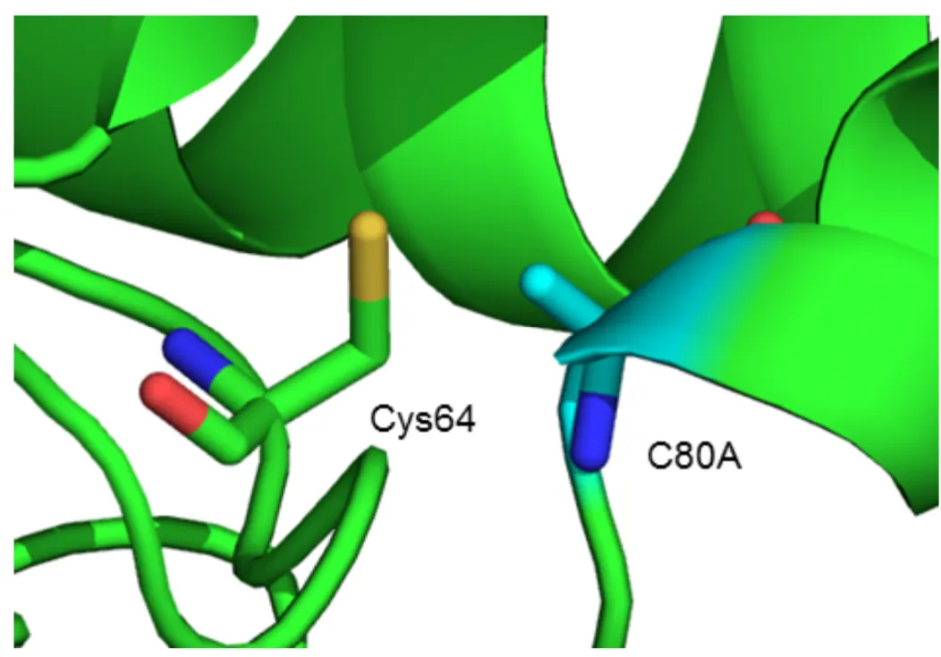 - Hide the spheres for His64: (His64) ‘H’ > spheres.