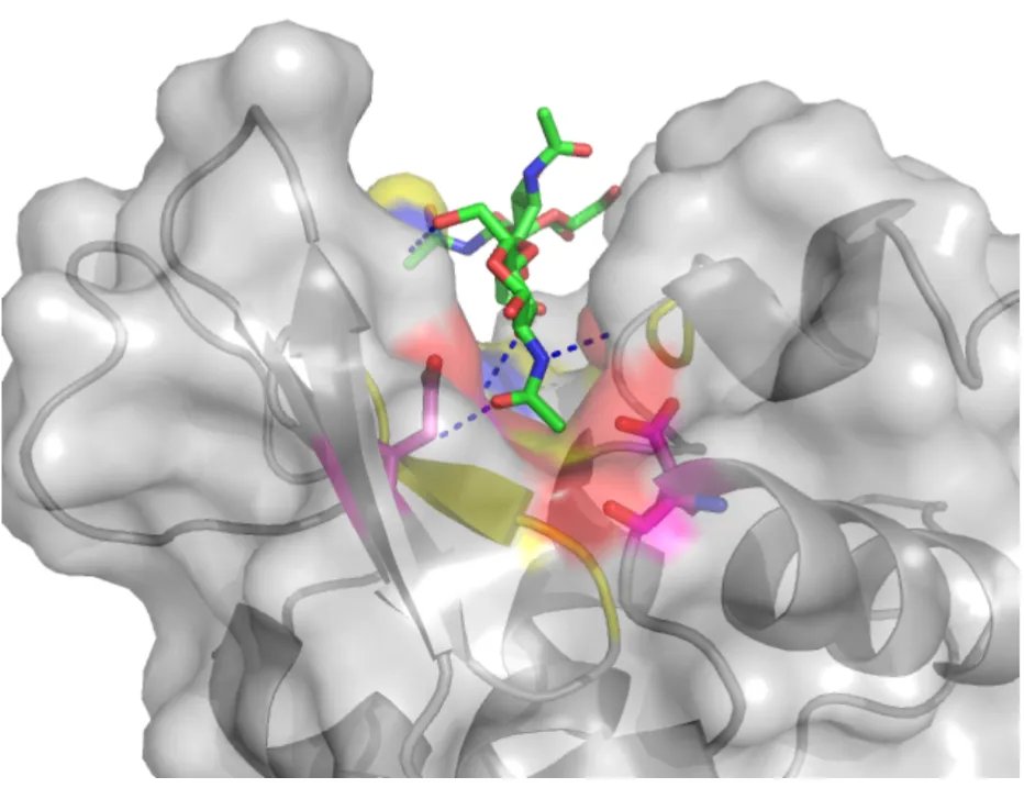 You will start learning about PyMOL by looking at the enzyme Hen Egg lysozyme in complex with the trisaccharide inhibitor tri-(N-acetylglucosamine) or tri-NAG).