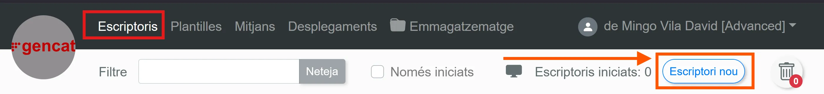 Crea un nou escriptori prement el botó Escriptori nou de la vista Escriptoris.