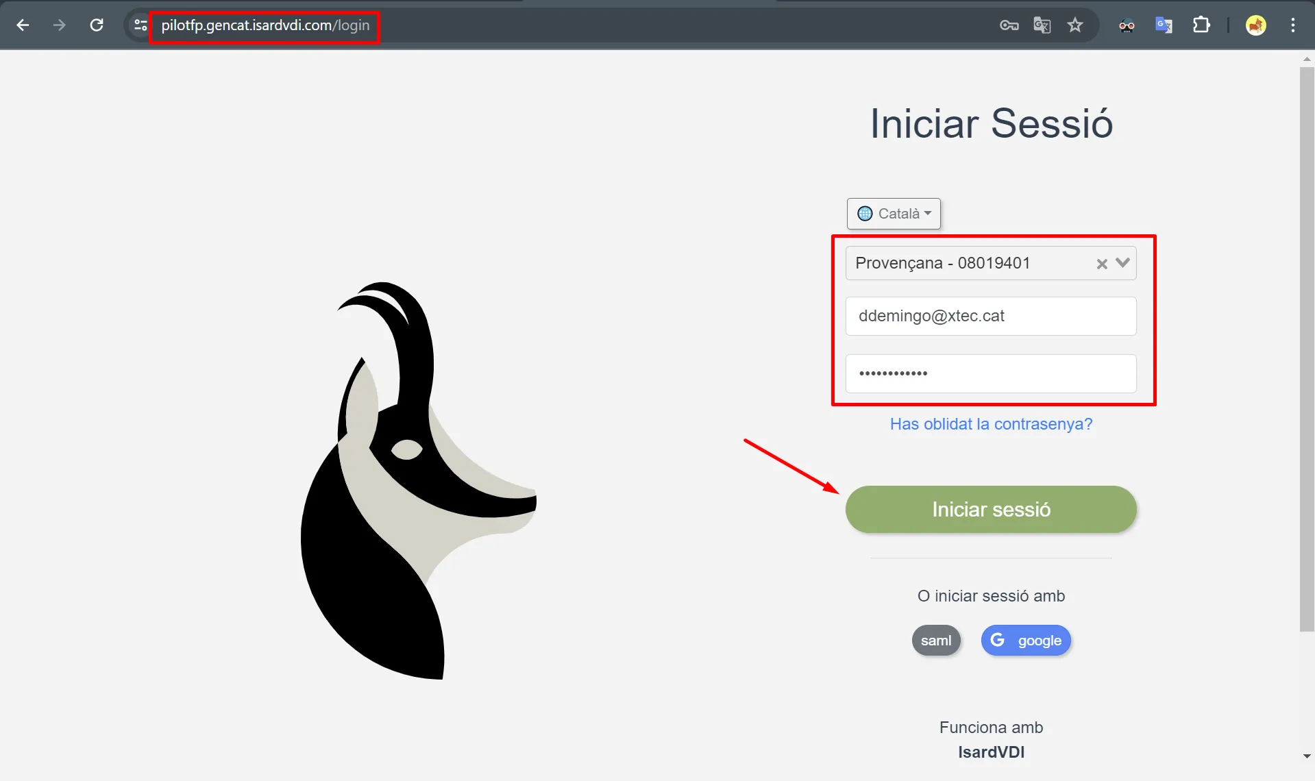 Has d’accedir amb el teu identificador @edu.gencat.cat.
