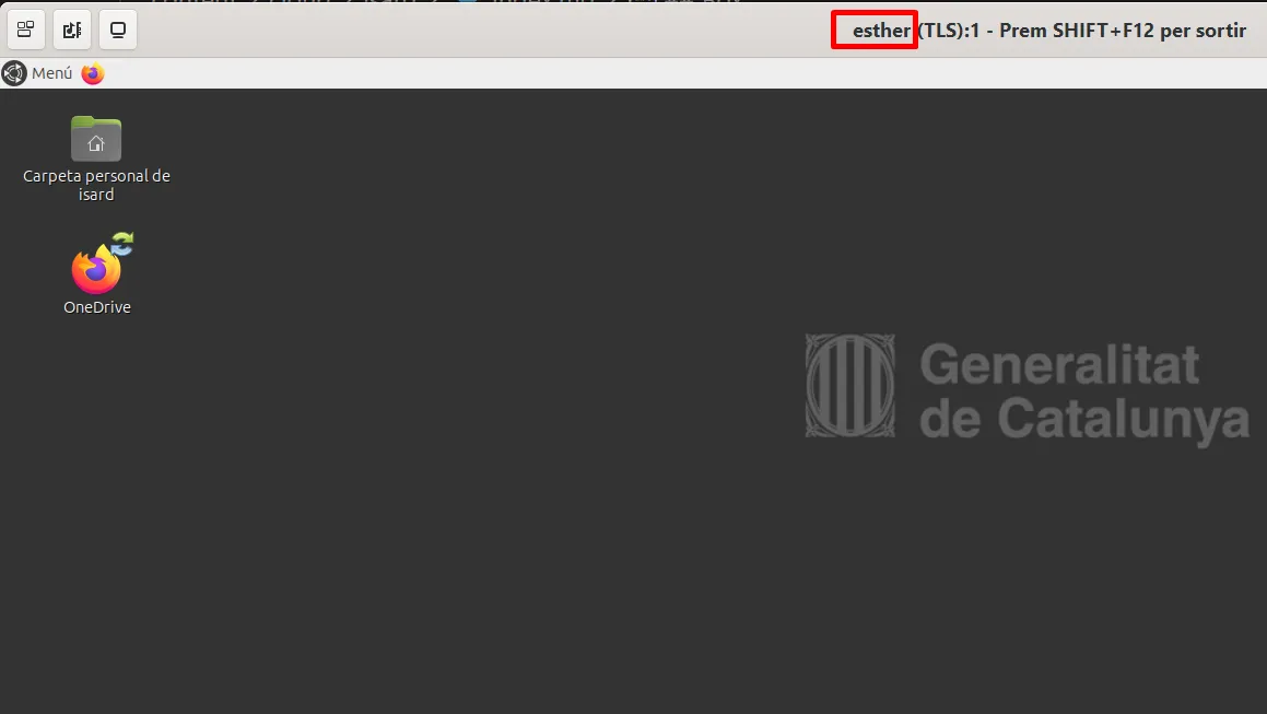 > connect-isard esthermars: Engegant la màquina ................. Fetmars: Obtenint el fitxer de configuració ... Fet.Pots veure com s’obre una finestra nova amb la interfície gràfica de la màquina esther: