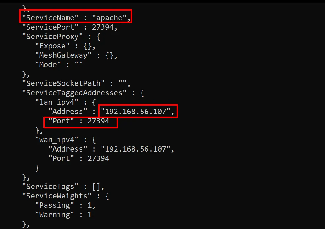 $ curl http://192.168.56.106:8500/v1/catalog/service/apache | json_pp