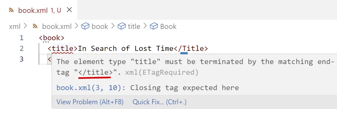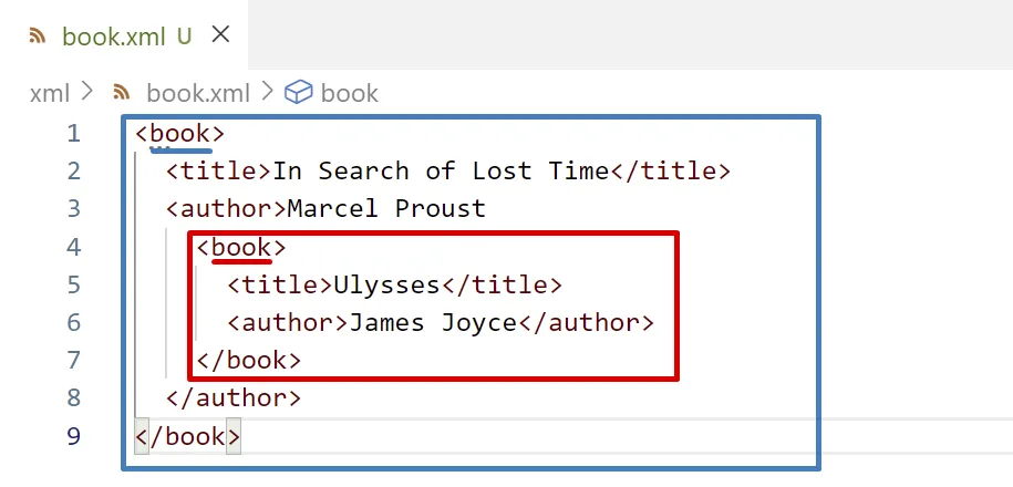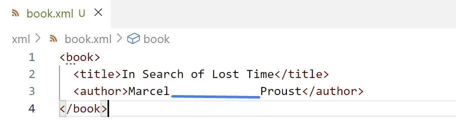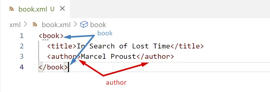 <book> <!-- Book Title --> <title>In Search of Lost Time</title> <author>Marcel Proust</author></book>Element buit