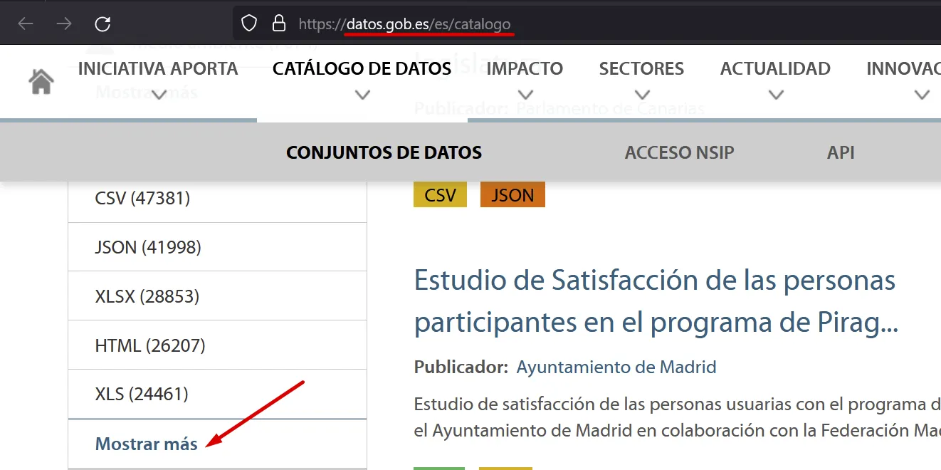 A Catálogo de datos pots trobar dades en diferents formats