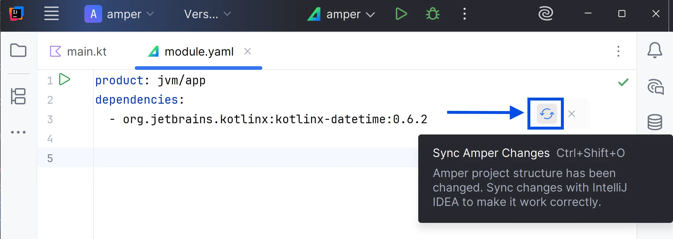 Com que has modificat la configuració d’Amper, has de sincronitzar els canvis: