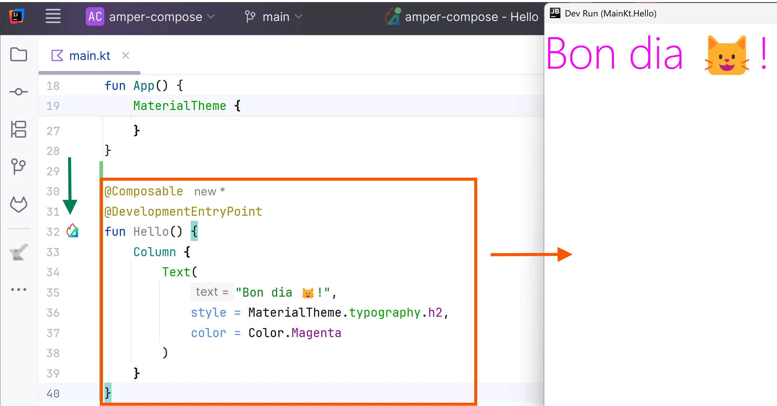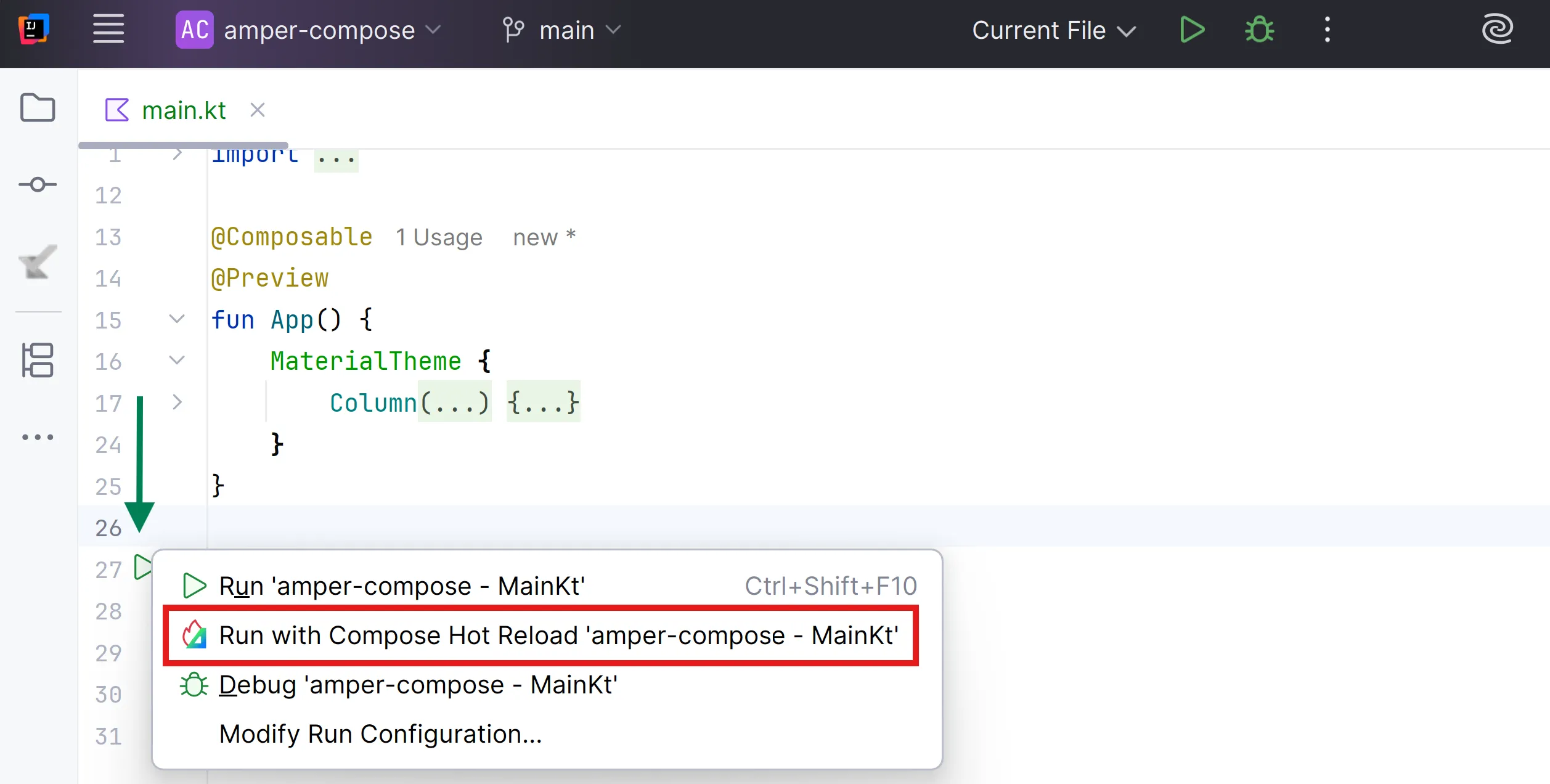 .\amper run --compose-hot-reload-modeIntegració amb l’IDE