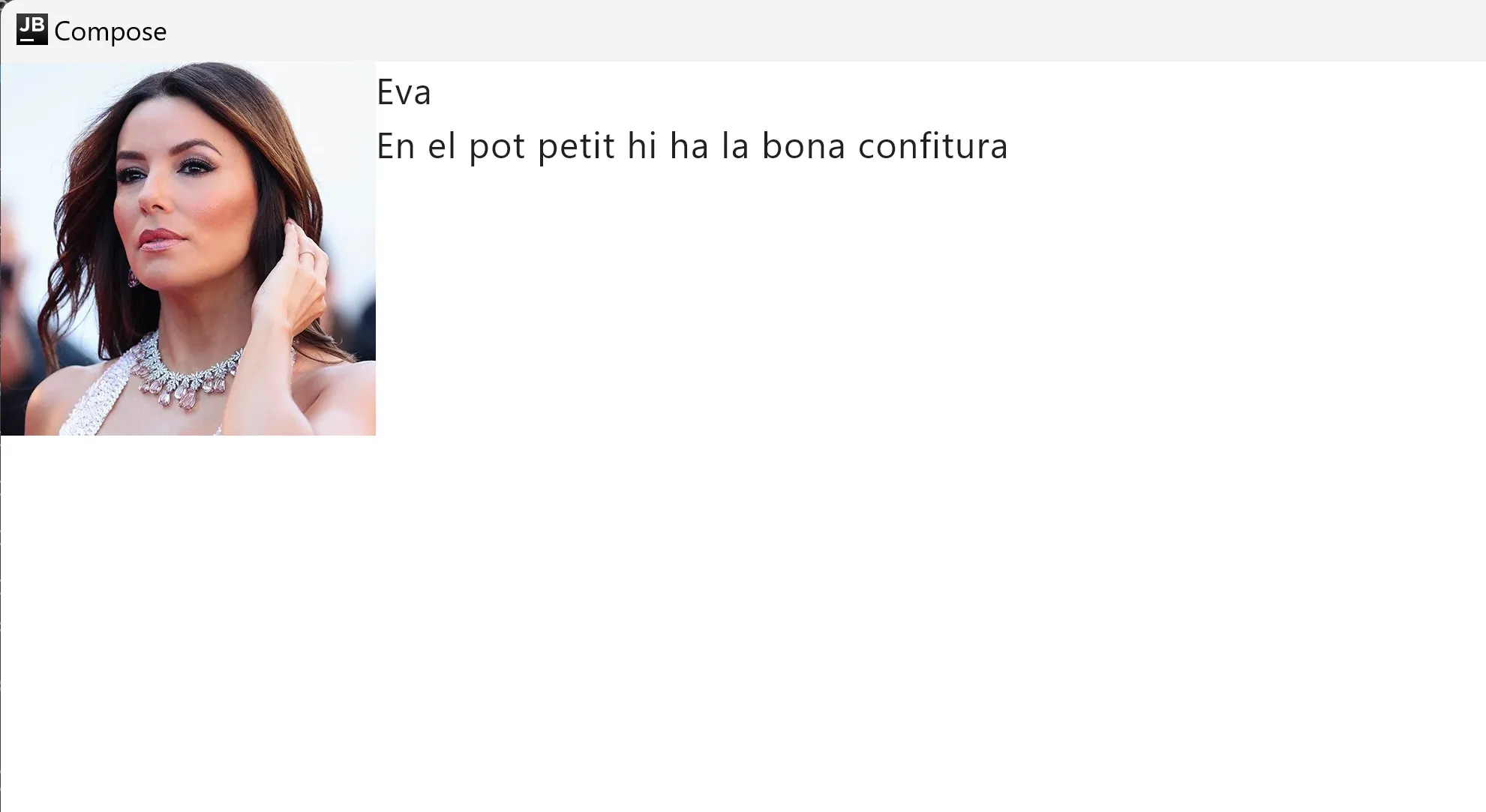 @Composablefun App() { MaterialTheme { MessageCard(Message("Eva", "En el pot petit hi ha la bona confitura")) }}
