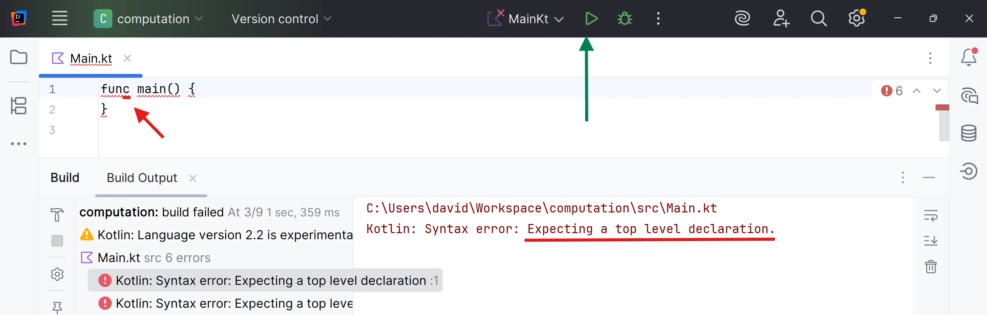 Això és un bon senyal perquè Kotlin és molt estricte i no et perdona cap error d‘“ortografia” a diferència del que fan la majoria de professors 🤔