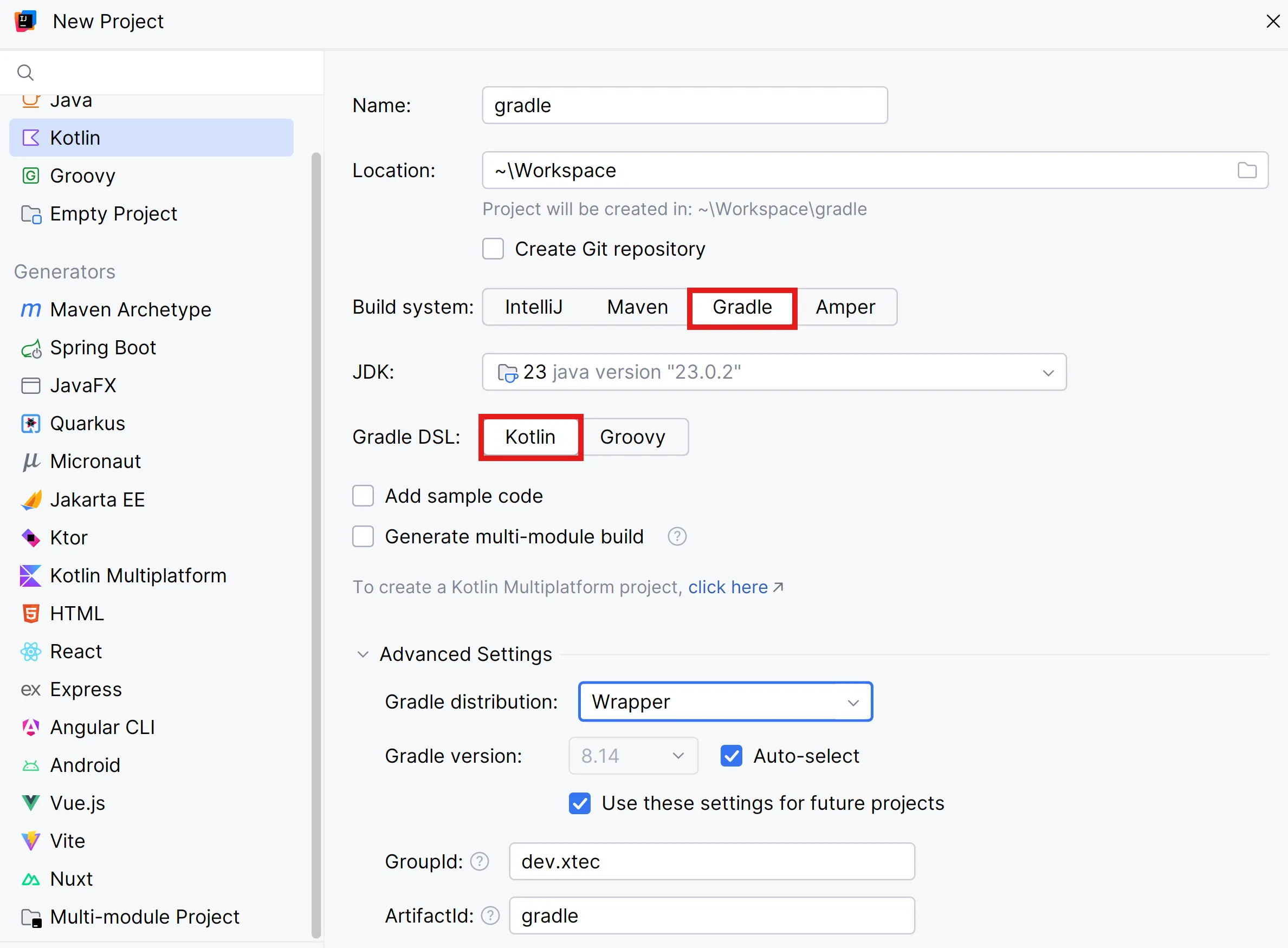 Create a new Kotlin project using Gradle and Kotlin Gradle DSL: