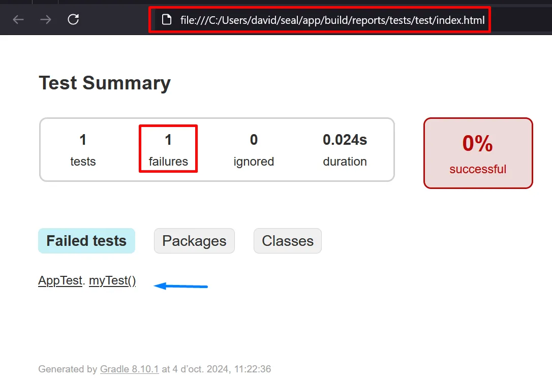* What went wrong:Execution failed for task ':app:test'.> There were failing tests. See the report at: file:///C:/Users/david/gradle/app/build/reports/tests/test/index.html