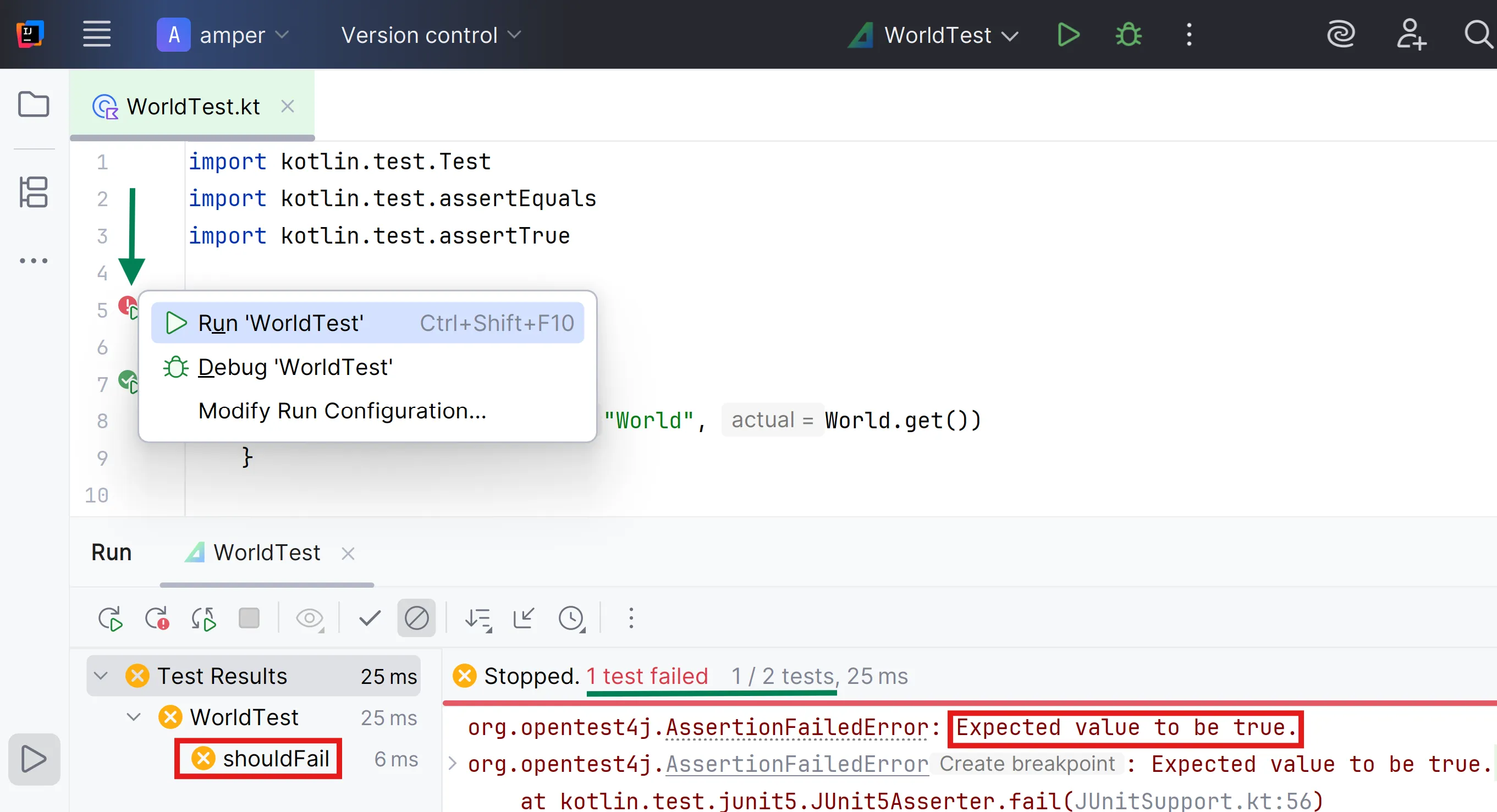 Amper configura el framework de proves Kotlin test de manera automàtica per a cada plataforma