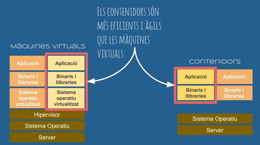 A diferència de les màquines virtuals, els contenidors Docker no utilitzen cap virtualització de maquinari.