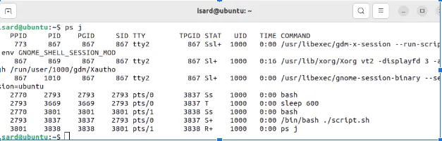 man psPROCESS STATE CODES Here are the different values that the s, stat and state output specifiers (header "STAT" or "S") will display to describe the state of a process: D uninterruptible sleep (usually IO) I Idle kernel thread R running or runnable (on run queue) S interruptible sleep (waiting for an event to complete) T stopped by job control signalSi consultem la llista de processos mentre tenim obert el terminal: