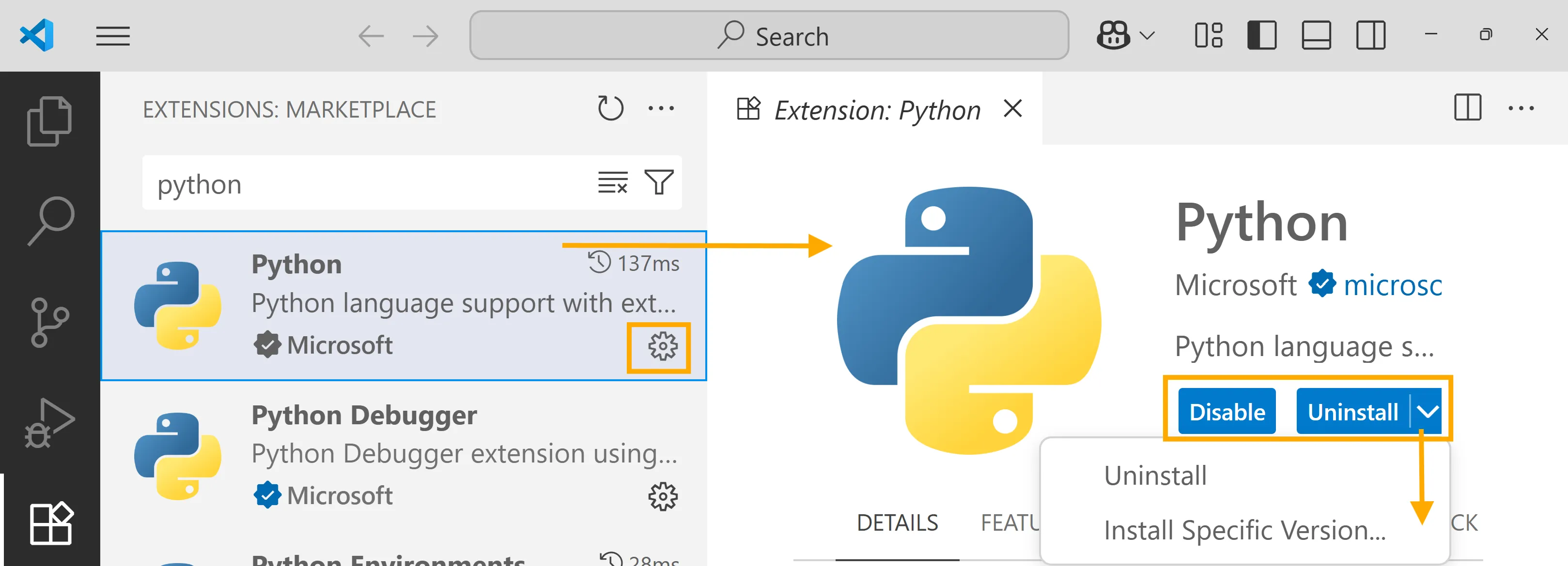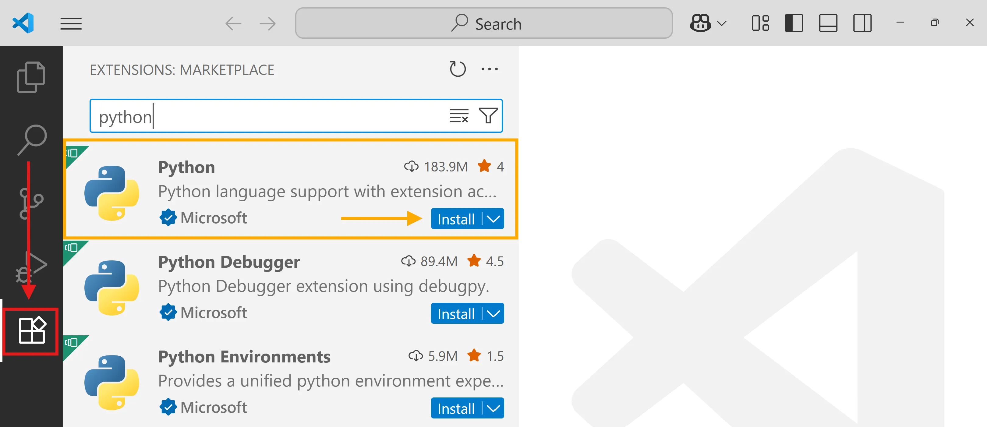 Pots ampliar la funcionalitat de Visual Studio Code instal·lant extensions des del Visual Studio Code Marketplace. Aquestes extensions estan creades tant per Microsoft com per la comunitat de desenvolupadors. Aquestes extensions afegeixen més funcionalitats, temes, eines i suport de llenguatges per al teu flux de treball de desenvolupament. Pots cercar extensions al Marketplace des de la vista Extensions.