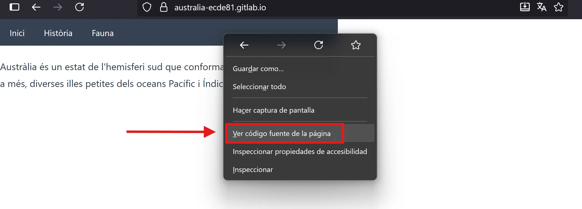Si fas clic a l’enllaç “Història” et diu que el fitxer c:\Users\david\australia\history.html