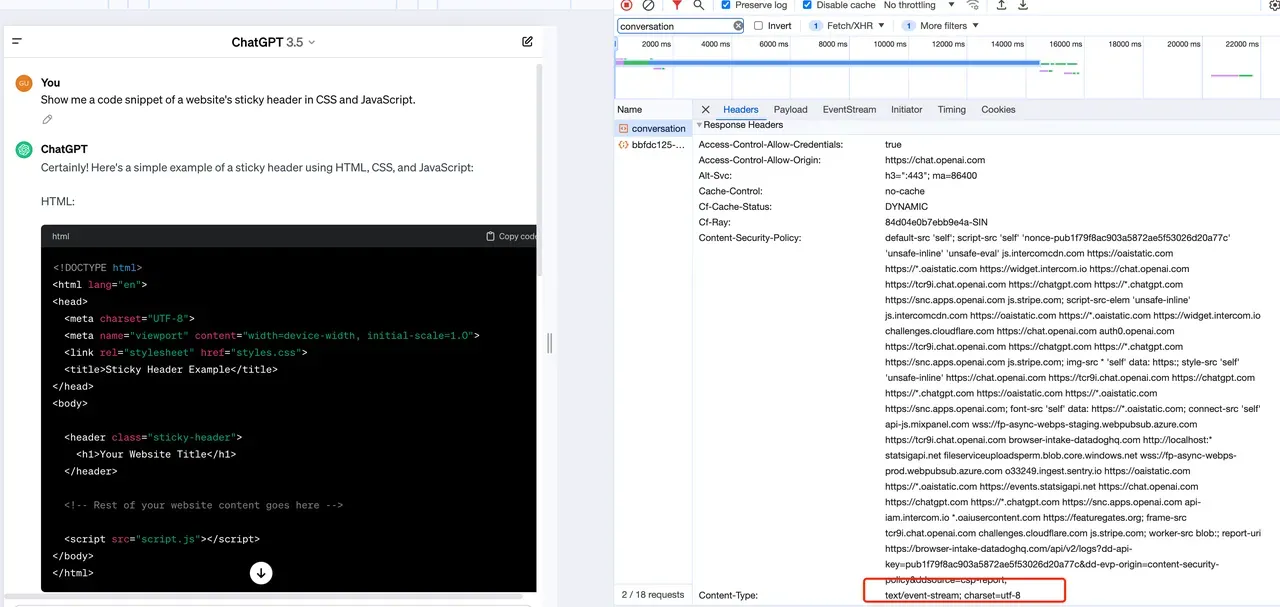 For example, when using ChatGPT, when you ask it a question, you will see it displaying the answer word by word. In reality, ChatGPT proactively ‘pushes’ the pre-computed data to you, using SSE technology to return data while calculating, thus avoiding long interface waiting times that could lead to direct page closure.