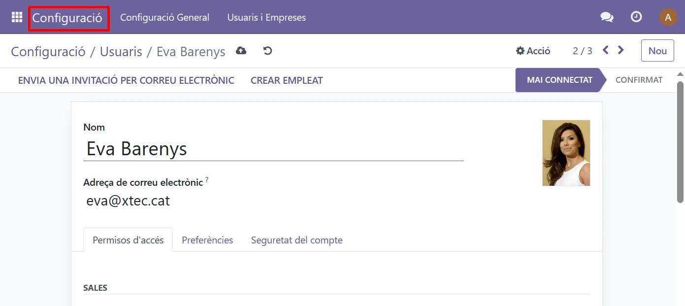 Perquè un empleat també sigui usuari d’Odoo l’has de donar d’alta com usuari: