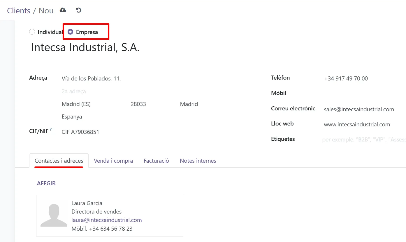 Pots crear diversos contactes per una empresa