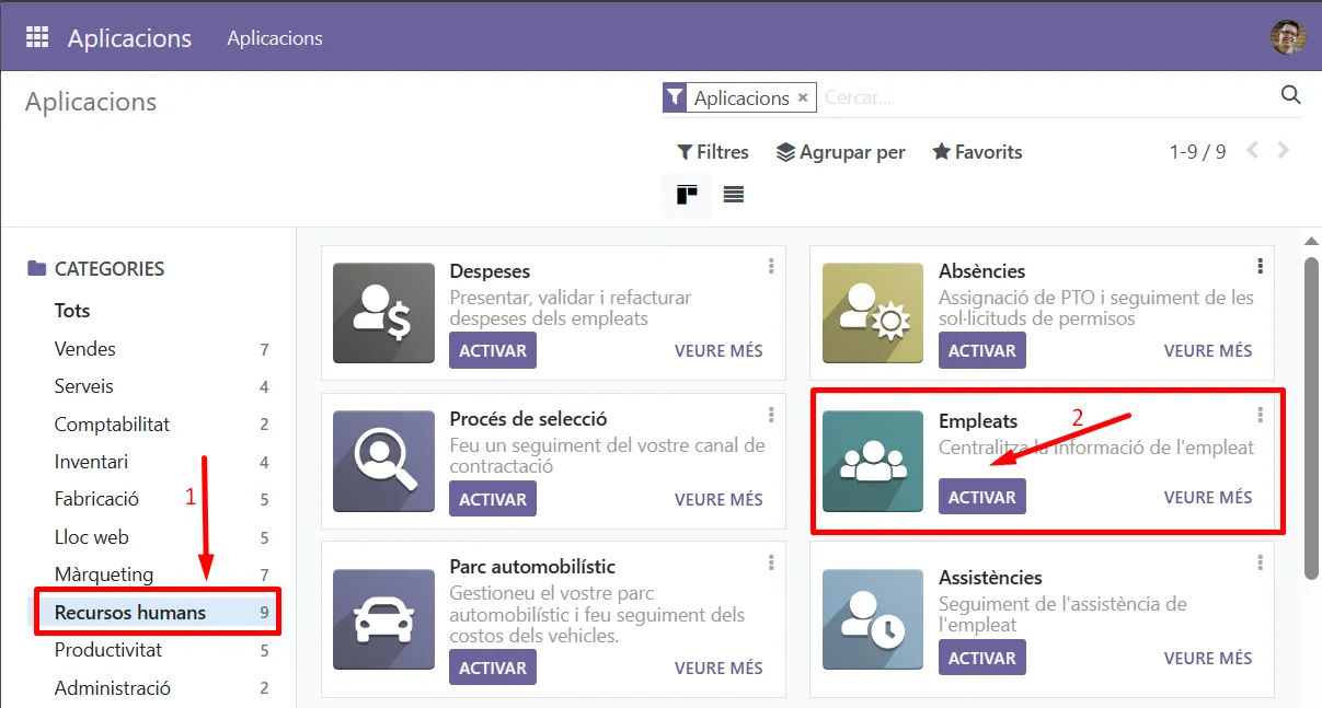 Activa la gestió d’empleats per poder accedir a les dades d’empleats: