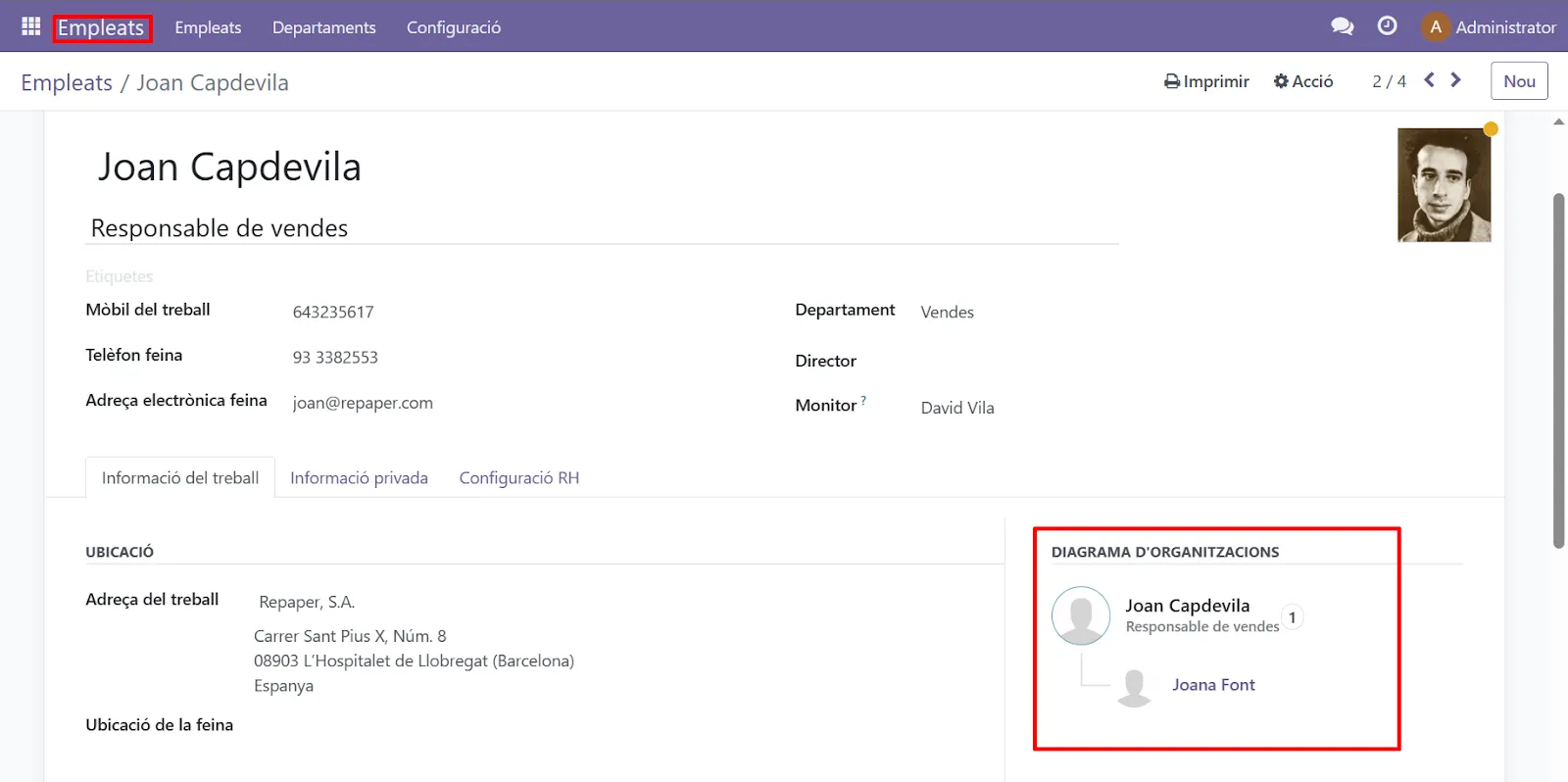 L’empresa REPAPER disposa d’una plantilla de 4 treballadors, distribuïts de la següent manera: